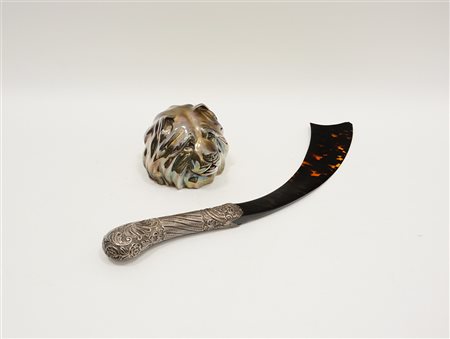 Lotto composto da un tagliacarte a forma di sciabola con impugnatura in...