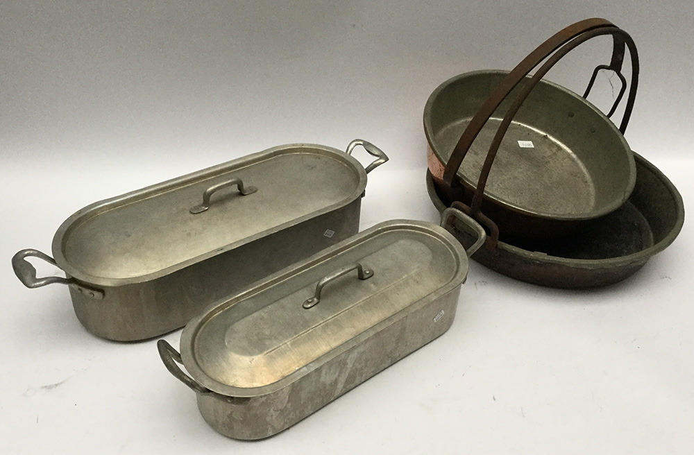 Cartone contenente quattro tegami in alluminio e rame