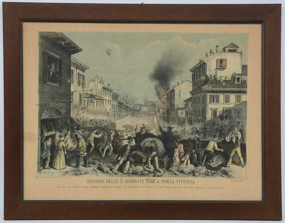 Stampa raffigurante una scena delle cinque giornate di Milano (cm 44x58) (difetti)
