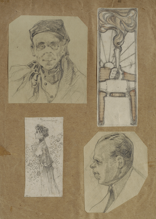 G. Baracchini Ritratti e studio Matita su carta, cm. 9,5x9; cm. 13x4,5; cm....