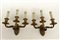 Coppia di applique a tre fiamme in bronzo dorato (h tot cm 30) (difetti)