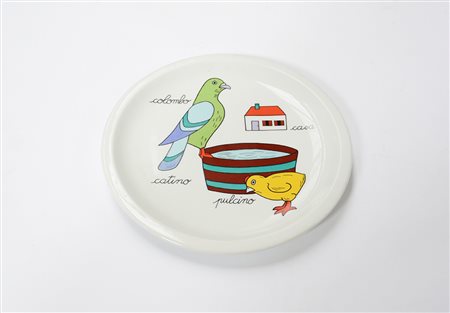 Remo Bianco (Milano 1922 - 1988)Piatto in porcellana con decoro elementare...
