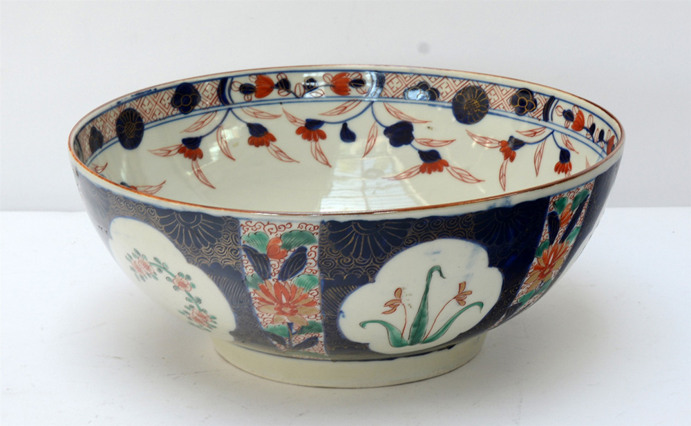 Ciotola in porcellana a decori floreali in stile Imari (difetti)