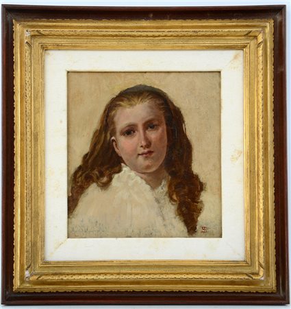 Ignoto "Ritratto di fanciulla" olio su tela (cm 28x26) Reca sigla TS in basso a destra. In cornice