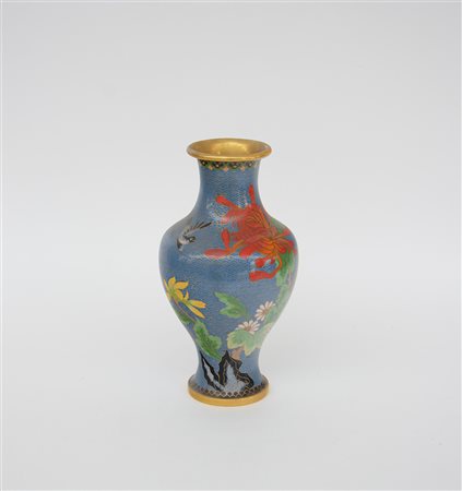 Vaso in metallo cloisonné decorato con fiori su fondo turchese (difetti)Cina,...