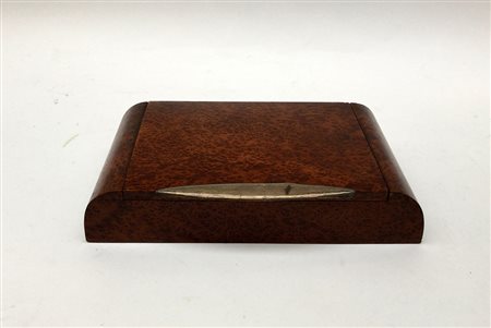 Portasigarette da tavolo decò in radica e argento. Italia, anni '30. (cm...
