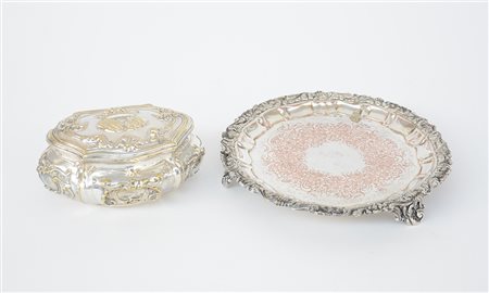 Lotto composto da una tabacchiera ed un'alzatina in metallo argentato...