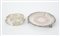 Lotto composto da una tabacchiera ed un'alzatina in metallo argentato dsecorati in rilievo, misure diverse (lievi difetti)