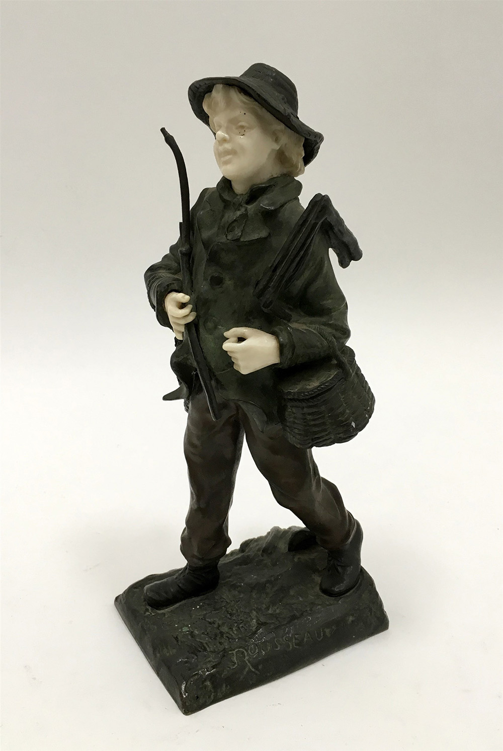 J. Rousseau "Cacciatore" scultura in bronzo con viso e mani crisoelefantine...