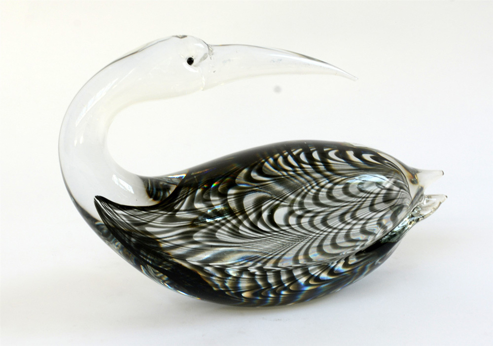"Uccello"Manifattura di Murano.Scultura in vetro sommerso incolore e ametista...