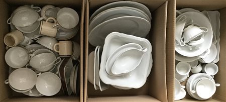 Lotto di cinque cartoni contenenti numerose stoviglie in ceramica (difetti)