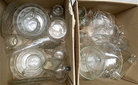 Lotto di due cartoni contenenti numerosi oggetti per la tavola in vetro...