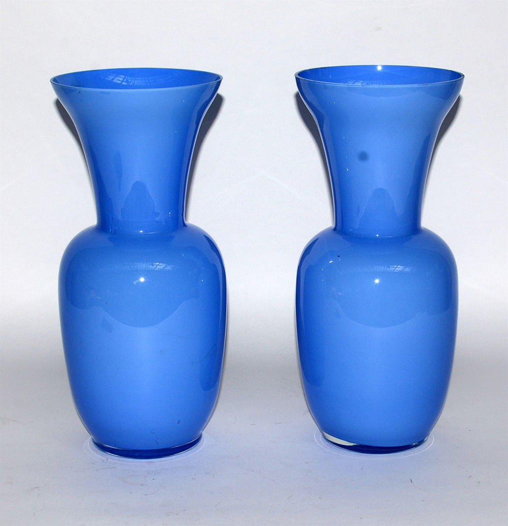Lot 4555 | Coppia di vasi a balaustro in vetro opacizzato celeste (h cm 35) (lievi difetti)
