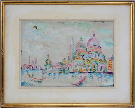 "Scorcio di Venezia" olio su tela (cm 26x36) firmato in basso a destra, in cornice (difetti)