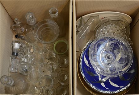 Lotto di due cartoni contenenti numerosi bicchieri ed altri oggetti per la tavola in vetro e in ceramica (difetti)