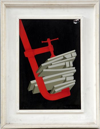 Renzo Oggioni "Composizione" tempera su cartoncino (cm 48x33) firmato e...