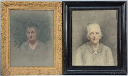 Lotto di due pastelli su carta raffiguranti ritratti femminili (cm 65x50) uno...
