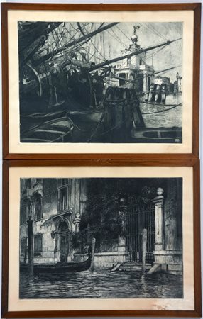 Firma indecifrata, "Scorci di Venezia" due acqueforti (cm 57x74) firmate, in...