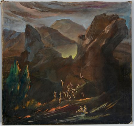 Ignoto, "Paesaggio con figure nude" olio su tela (cm 86,5x92) (difetti)