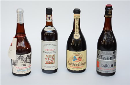 Lotto di quattro bottiglie di vino di vitigni e annate differenti
