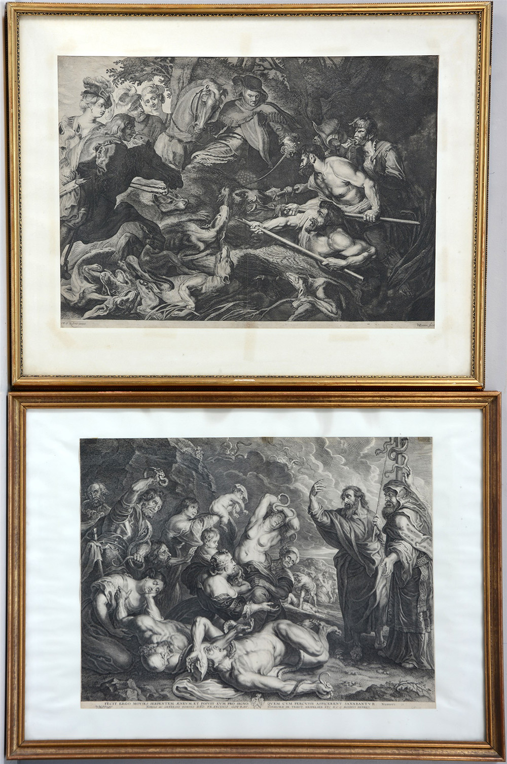 Due acqueforti da Rubens (max cm 46x65) misure differenti, in cornice (difetti)