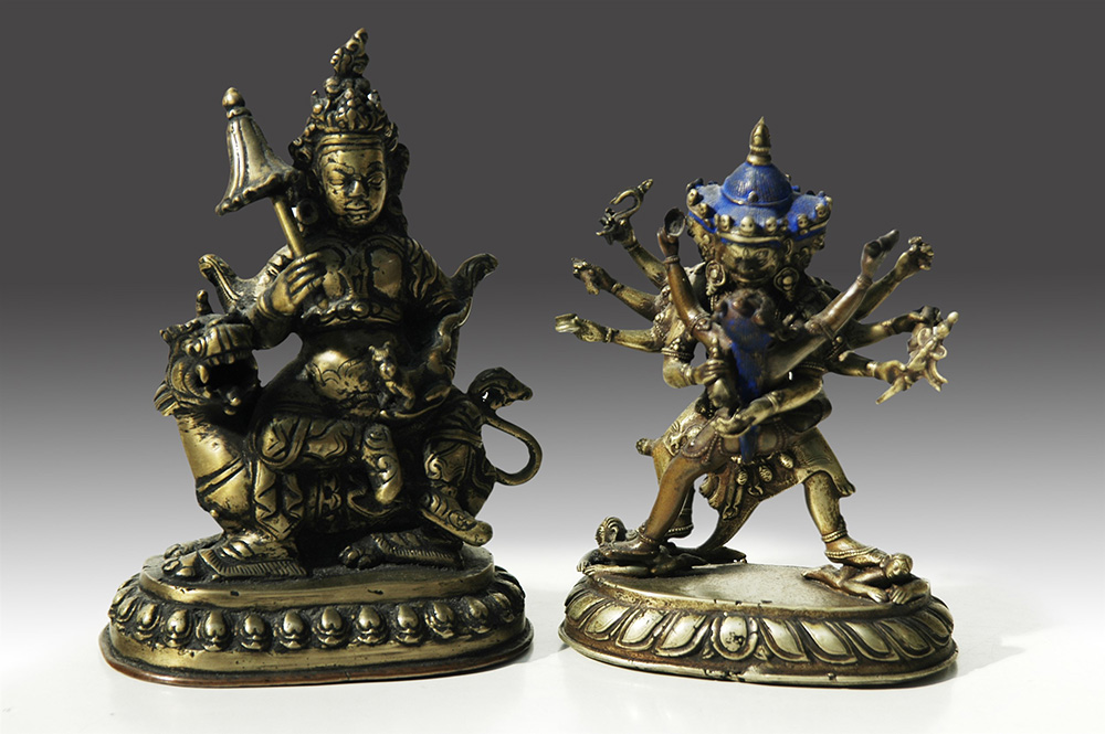 Due statuine in bronzo raffiguranti Vaisravana e Chakrasamvara