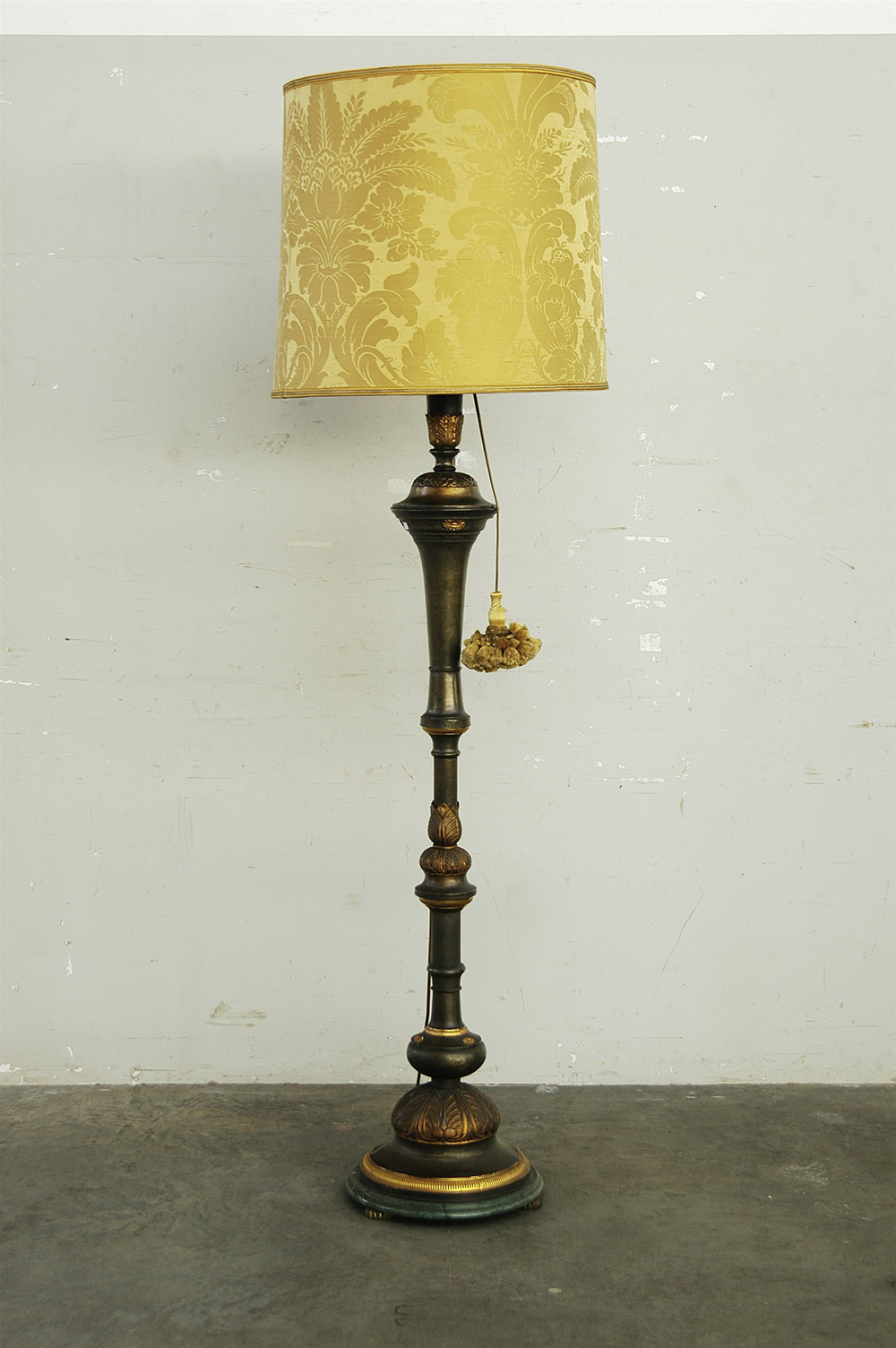 Torciera in metallo decorata a fregi e dorature, montata a luce elettrica