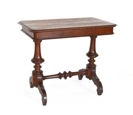 Tavolo da centro con piano in legno d'abete, sostegni torniti piedi a sagoma. Secolo XIX (cm 100x82x64) (difetti)