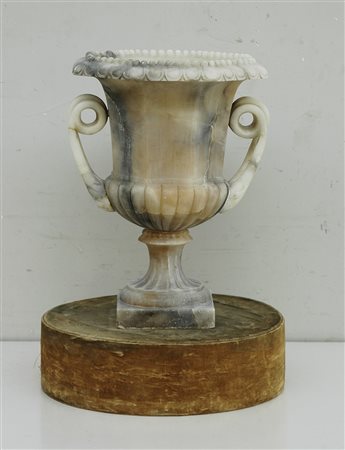 Vaso ottagonale biansato in alabastro venato (cm 33x45)
