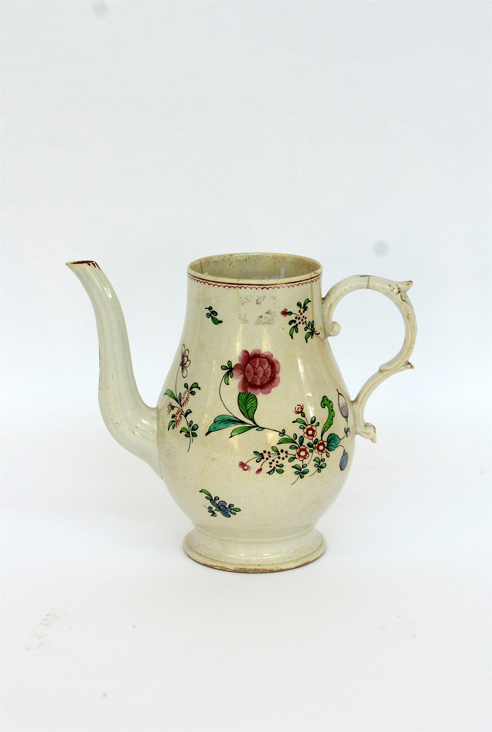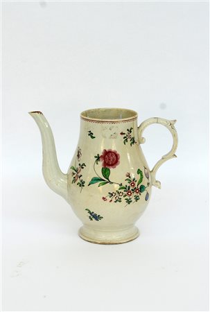 Caffettiera in terraglia policroma con decorazione a fiori, mancante del coperchio (h cm 20) XIX secolo (difetti e restauri)