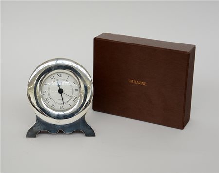 Faraone. Sveglia da tavolo con rivestimento in pelle e lamina d'argento in custodia originale (lievi difetti)