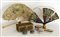 Lotto composto da due ventagli con supporti in ottone e sei scatolette di...