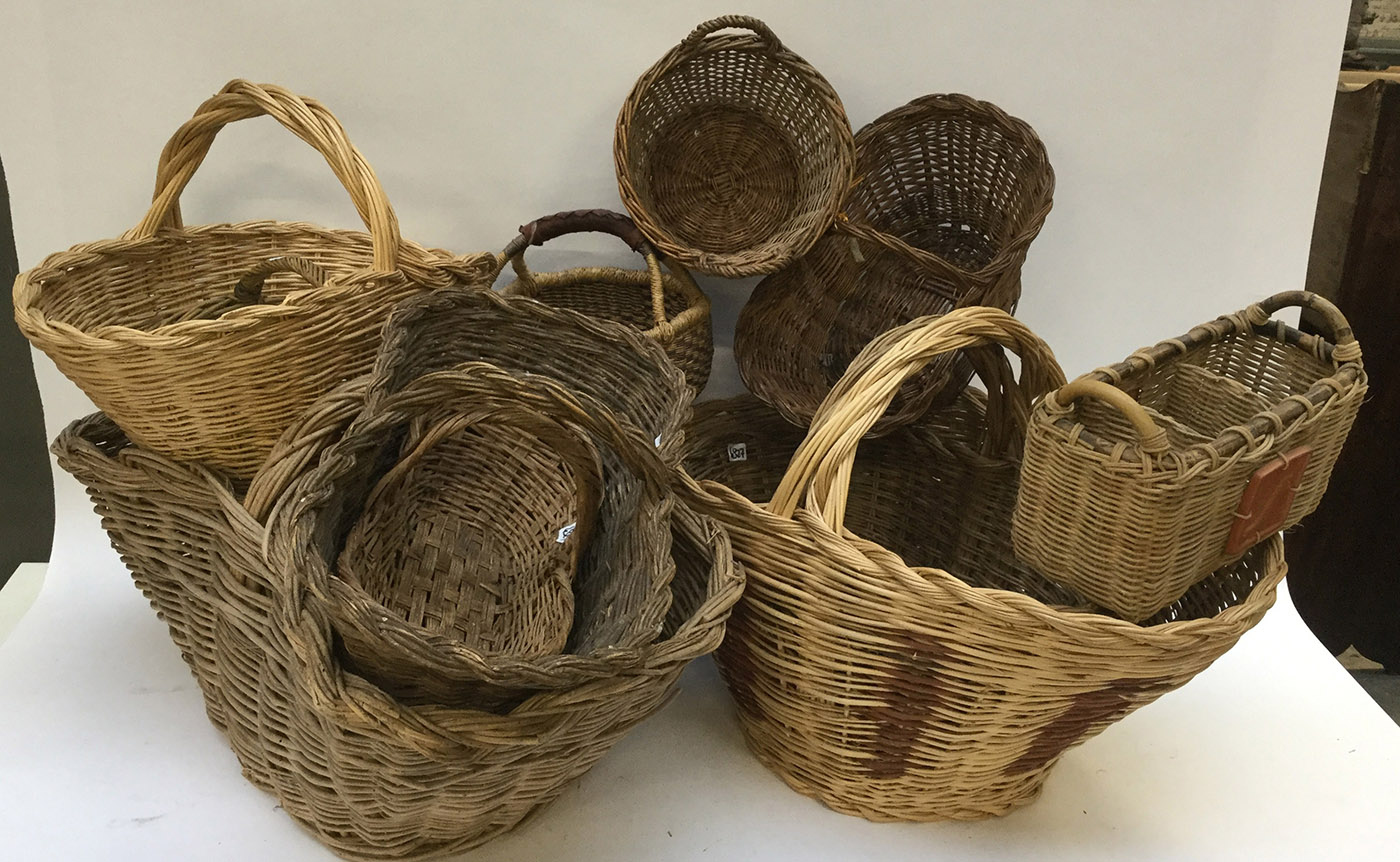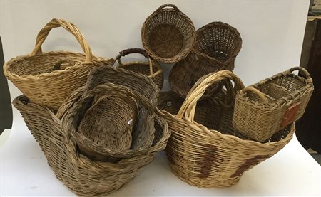 Sacco contenente un lotto di dodici cestini vari