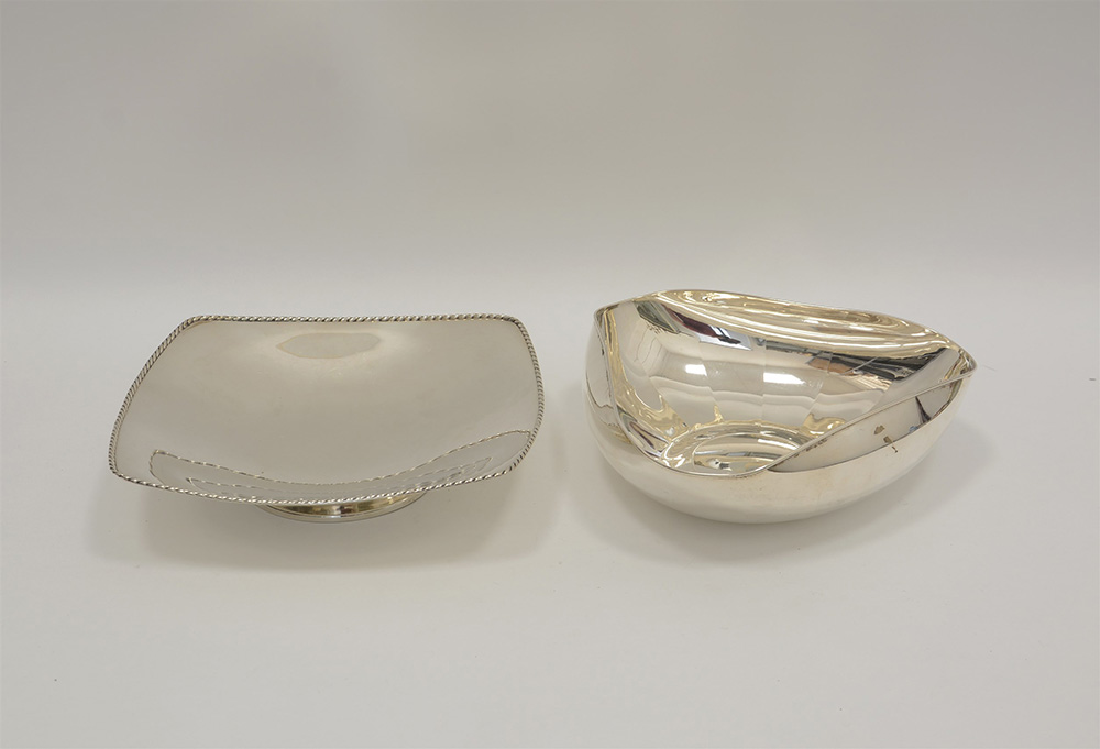 Due alzatine portadolci diverse in argento, (gr.600 ca.) (lievi difetti)