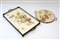 Lotto composto da un vassoio e un sotto pentola con piani in ceramica dipinti...