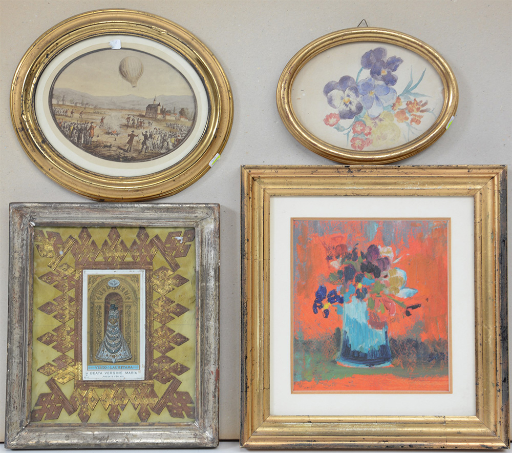 Lotto composto da due dipinti e due stampe di diversa tecnica e misura