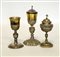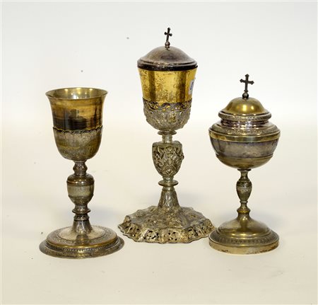 Lotto composto da due calici e una pisside in metallo (difetti)