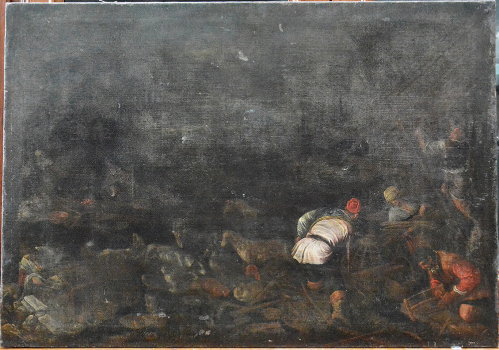 Da Jacopo Bassano, "Sacrificio di Noè", copia antica ad olio su tela (cm 81x115) (difetti e restauri)