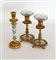 Manifatture diverse. Lotto composto da tre candelieri in metallo dorato,...