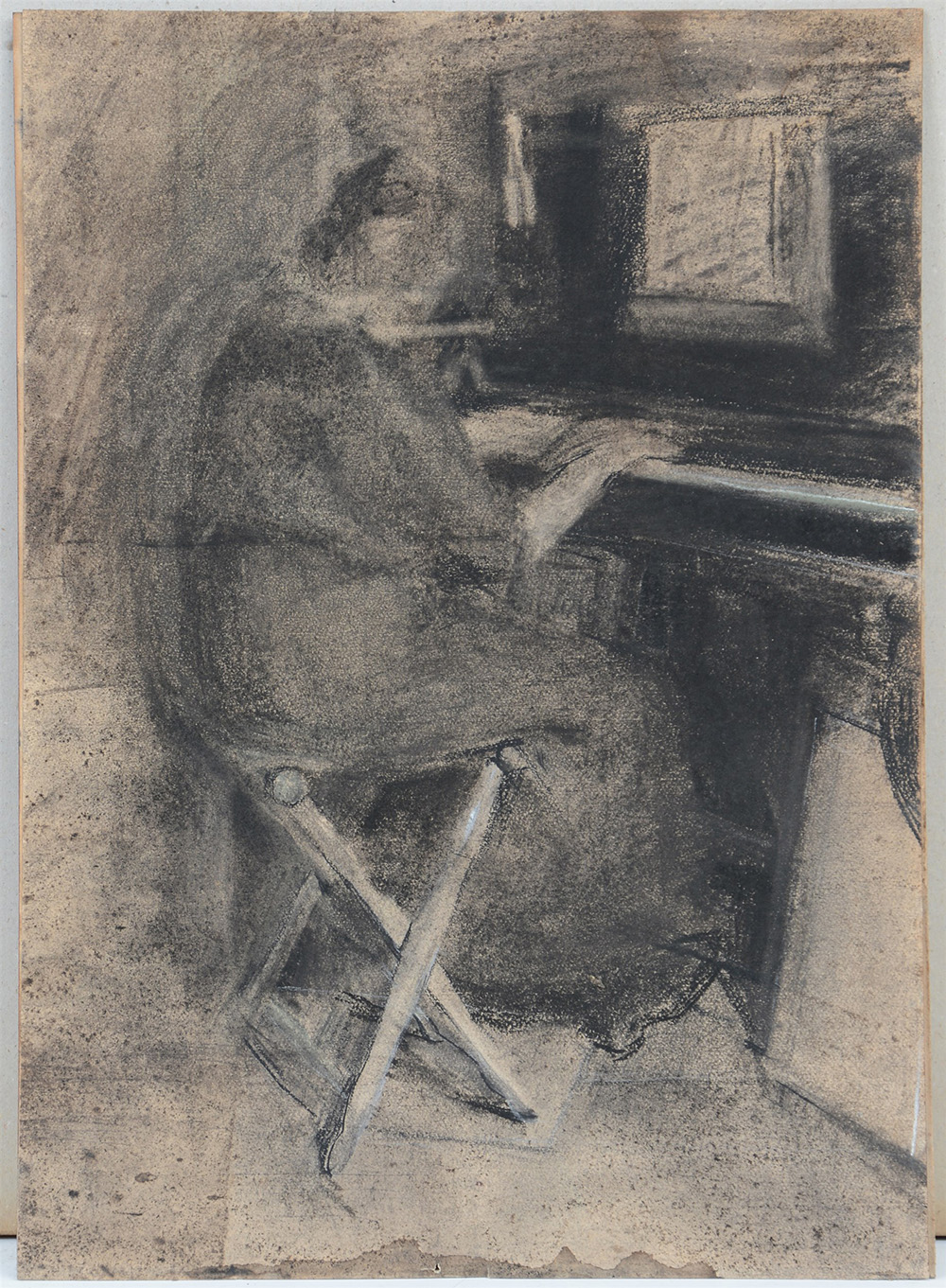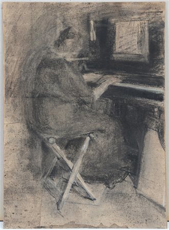 Ignoto secolo XIX, "Al pianoforte" disegno a carboncino (cm 43x30) in cornice (difetti)