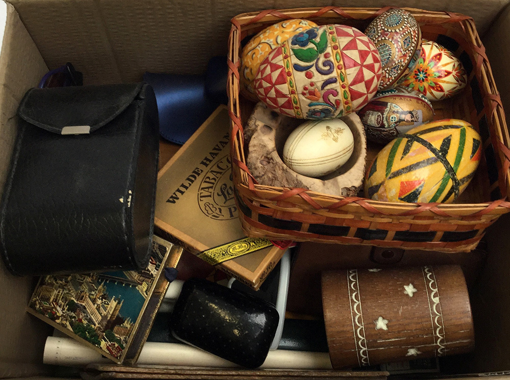 Lotto composto da numerosi oggetti per fumatori, occhiali, varie custodie, scatole e curiosità varie (difetti)