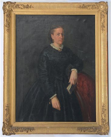 Scuola del secolo XIX ''Ritratto di donna'' olio su tela (cm 100x80) (difetti)