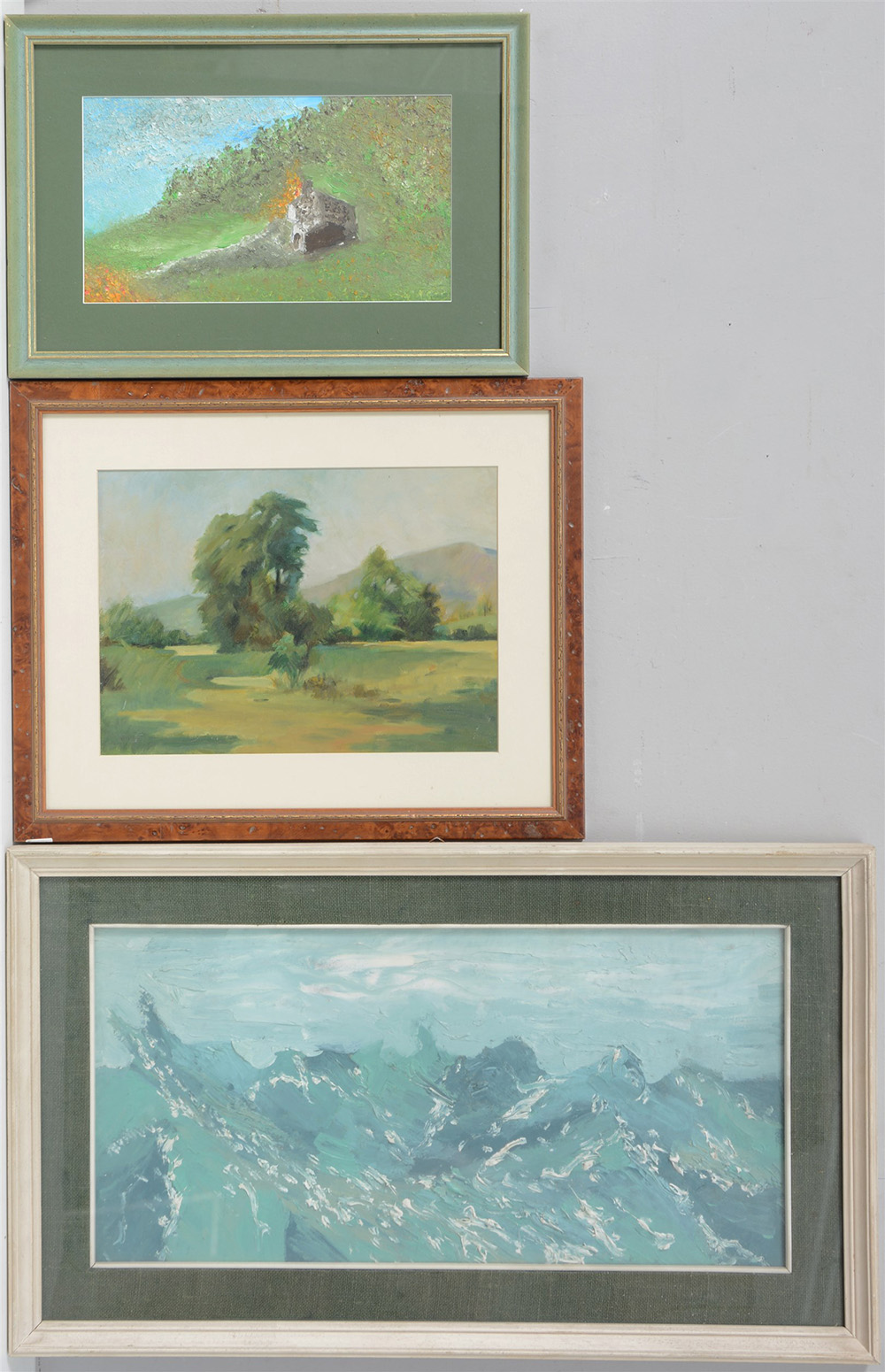 Lotto di tre paesaggi di tecniche e misure diverse, una firmata Aloi