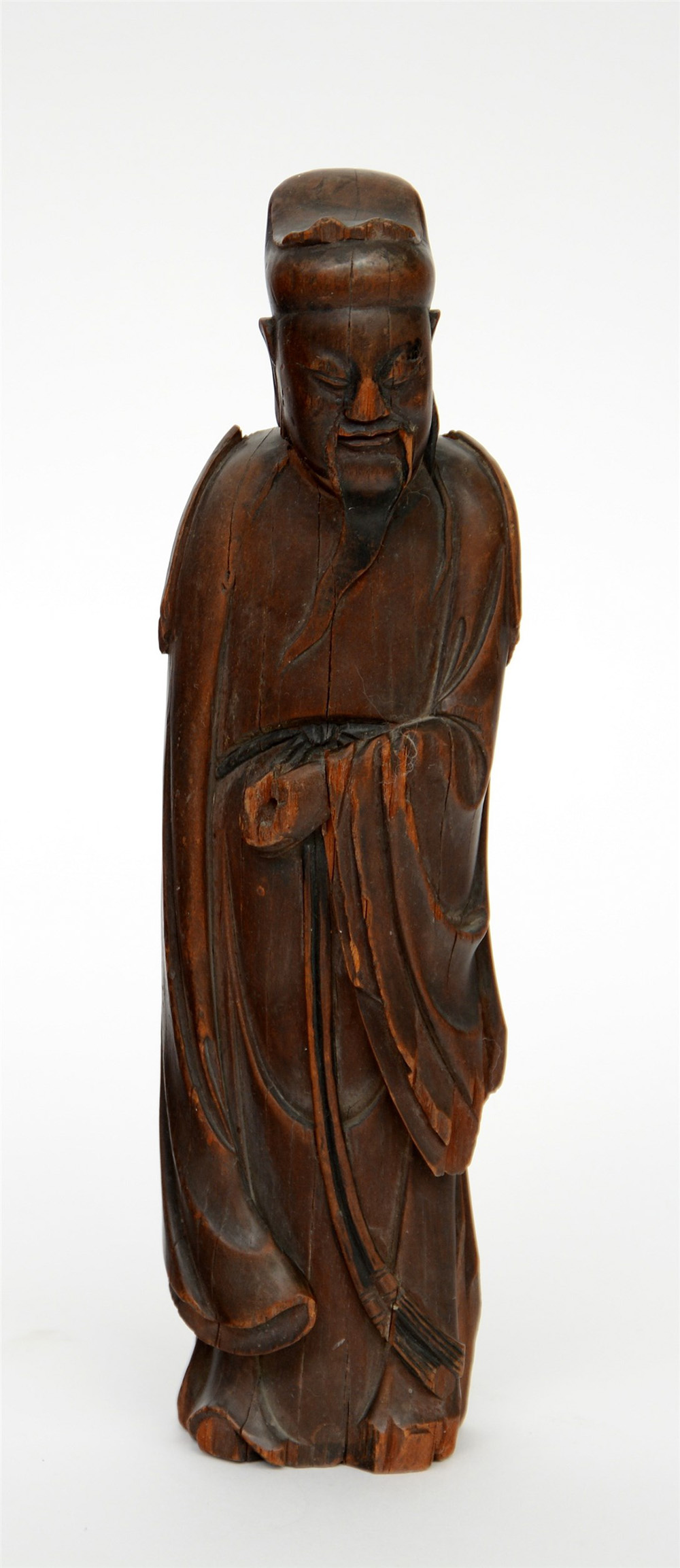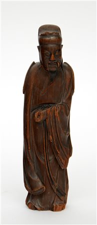 Scultura in legno raffigurante saggio dalla lunga barba. Cina, dinastia Ming (h.24cm.)