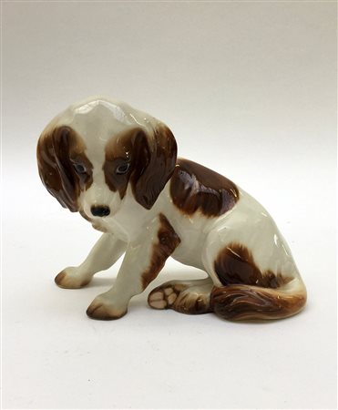 Statuetta in porcellana raffigurante un cane assiso (h cm 18)
