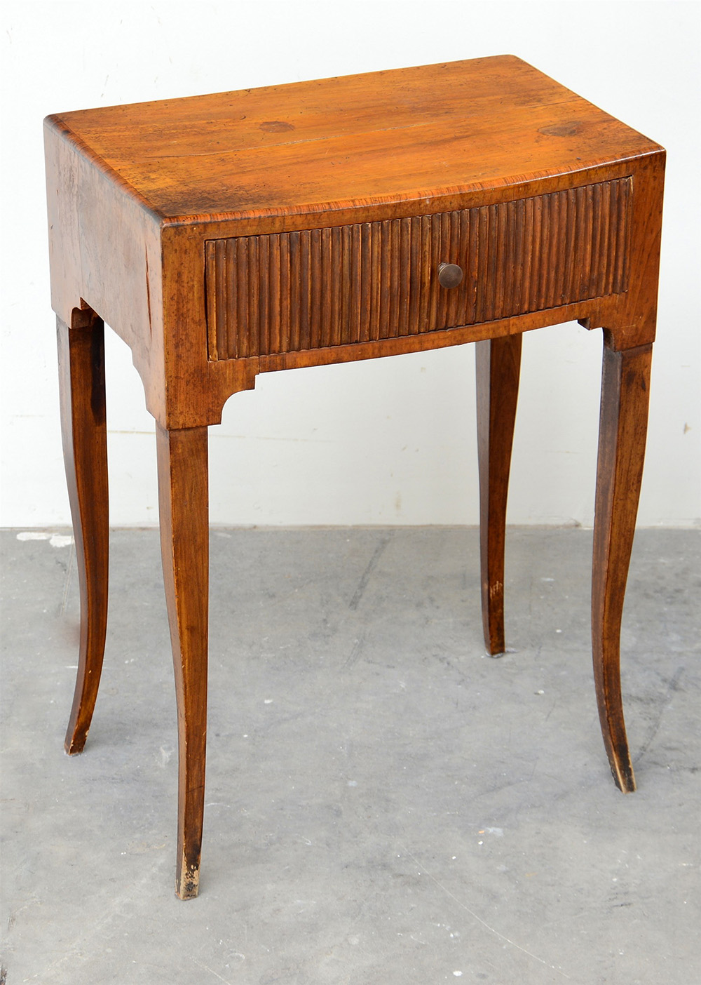 Comodino in noce ad un cassetto con fronte scanalato e gambe mosse (cm...