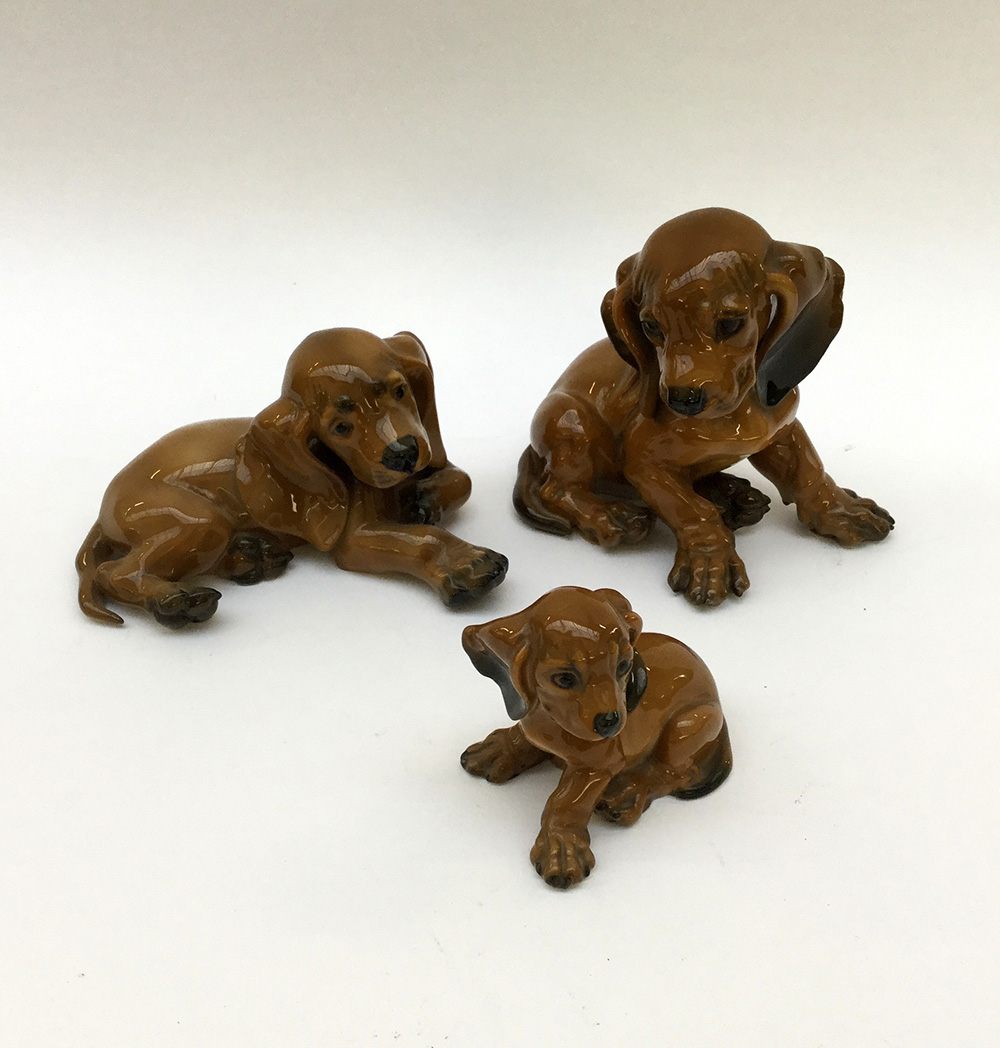 Manifattura di Rosenthal da Karner. Lotto composto da tre cuccioli di cani in ceramica decorata in policromia