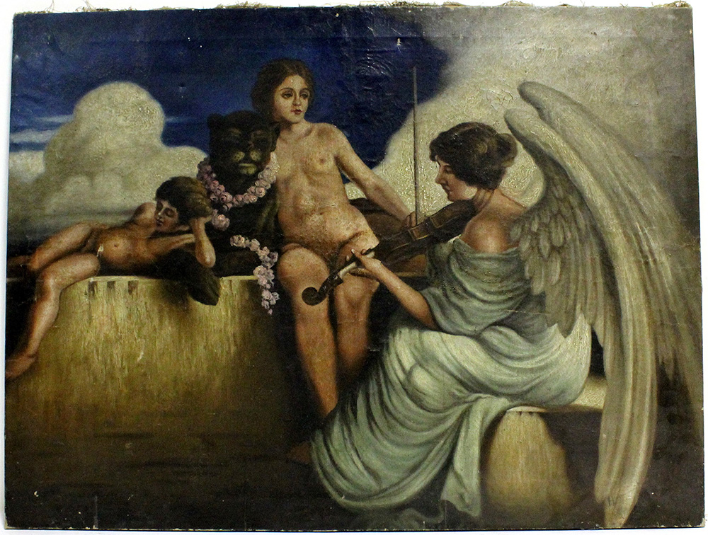 Maestro di inizio secolo XX "Allegoria della musica" olio su tela (cm 70x92,5) (difetti e restauri)