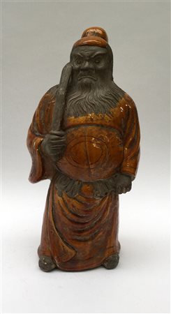 Arte orientale. "Guerriero" scultura in gres smaltato (h cm 51)