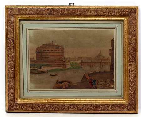 Scuola del secolo XIX "Veduta di Roma" acquerello su carta (cm 16x23) in cornice